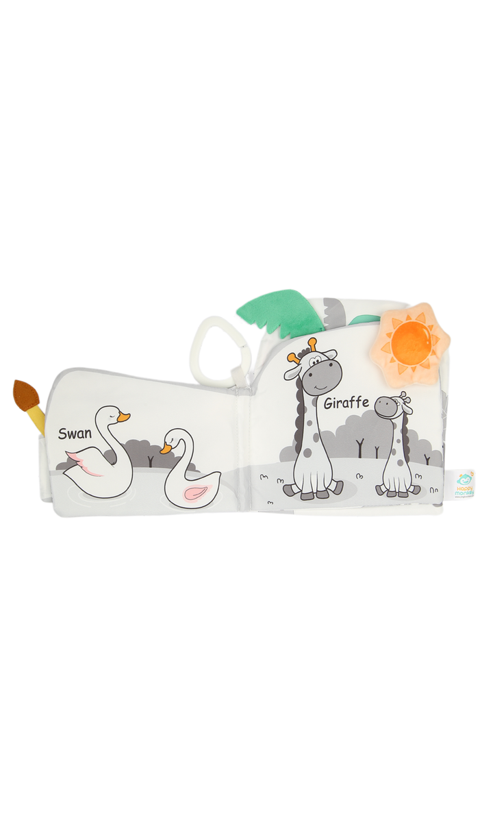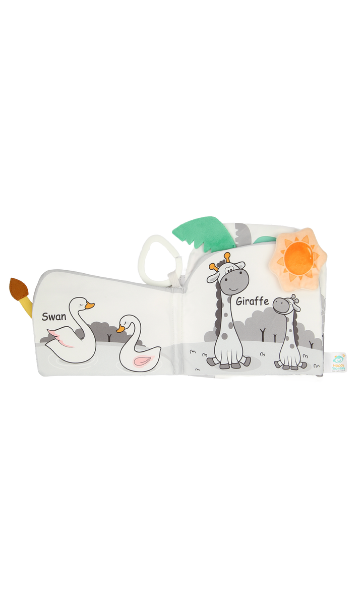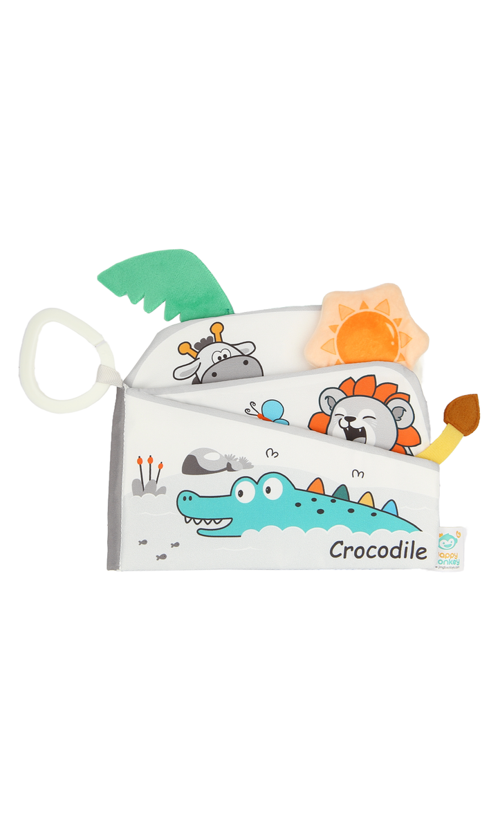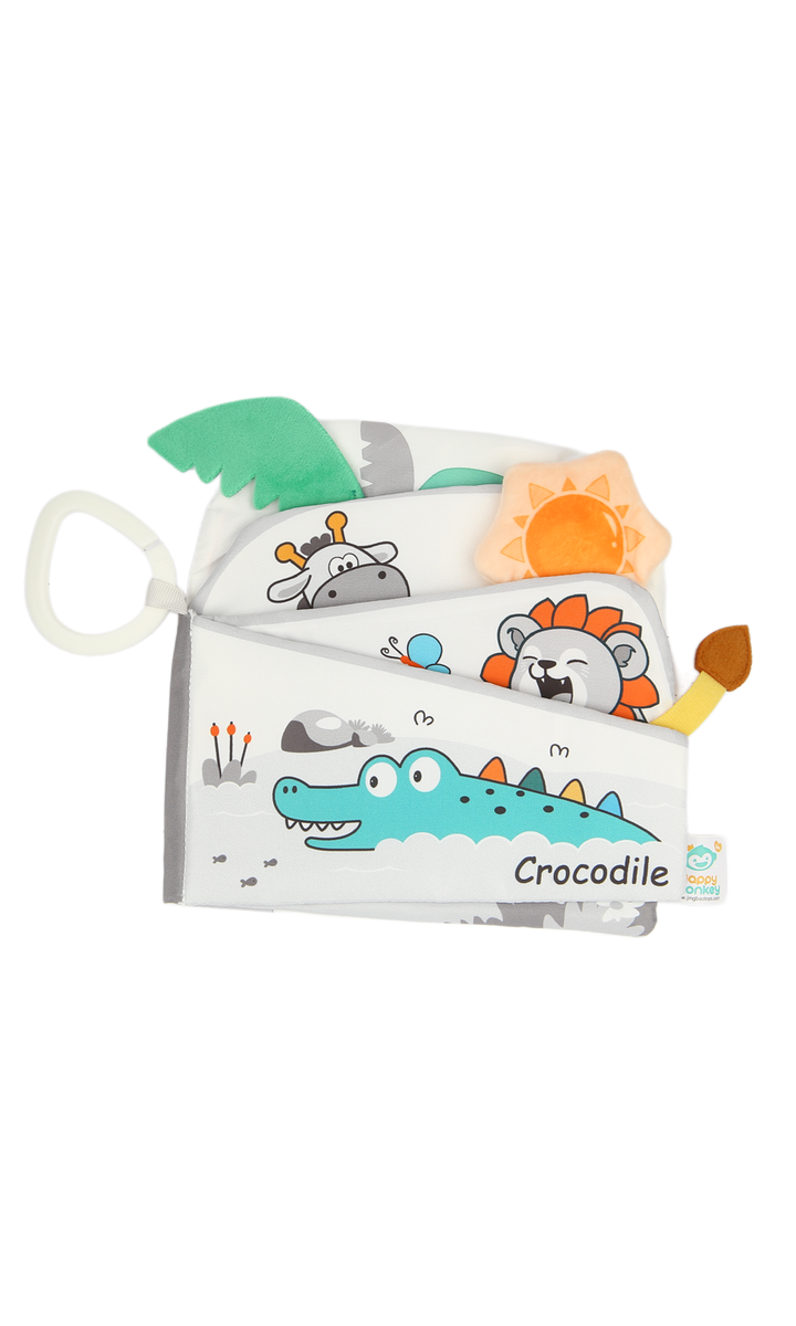 Make story time fun and engaging with this soft baby cloth book featuring an adorable elephant design. Made from safe, lightweight, and durable fabric, it’s perfect for little hands to hold and explore. The cute illustrations, crinkle sounds, and textured details stimulate your baby’s senses while encouraging early learning and recognition. With its soft edges and handy loop for easy attachment to strollers, cribs, or car seats, this baby book is ideal for keeping little ones entertained at home or on the go.