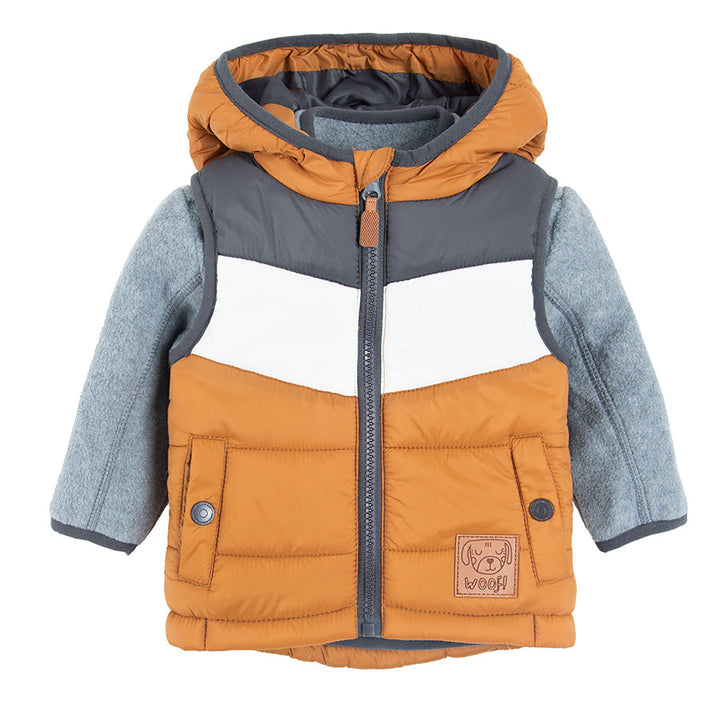 Boy's Set Sleeveless Hooded Jacket Fleece Sweatshirt Zip-Up Grey Brown COB2500264 00