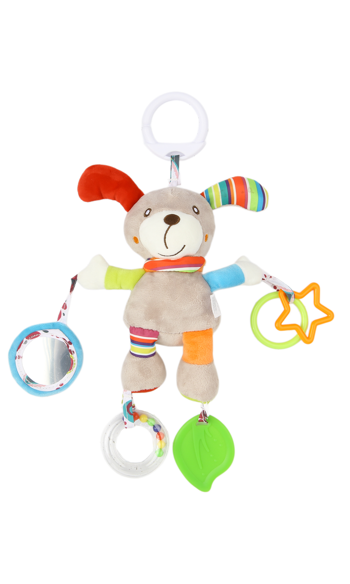 Bring joy and comfort to your little one with this plush hanging toy, designed to encourage sensory exploration and endless fun. With its bright colors, soft textures, and playful accessories, it stimulates your baby’s senses while keeping them entertained. The toy includes rattles, teethers, and rings to support early development. Easy to attach to strollers, cribs, or car seats, it makes a perfect companion at home or on the go.