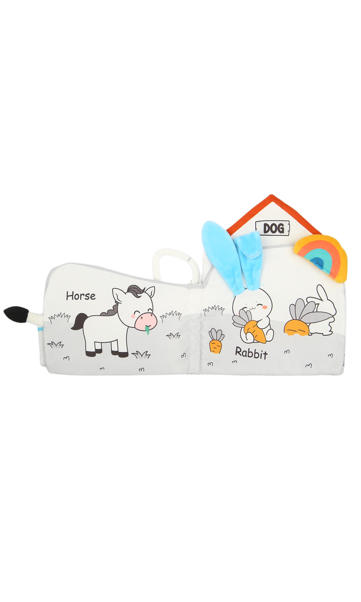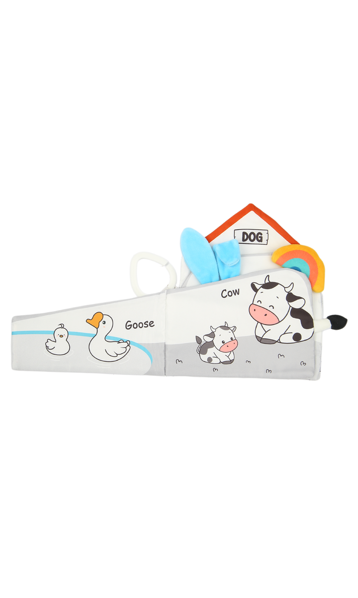 Make story time fun and engaging with this soft baby cloth book featuring an adorable elephant design. Made from safe, lightweight, and durable fabric, it’s perfect for little hands to hold and explore. The cute illustrations, crinkle sounds, and textured details stimulate your baby’s senses while encouraging early learning and recognition. With its soft edges and handy loop for easy attachment to strollers, cribs, or car seats, this baby book is ideal for keeping little ones entertained at home or on the go.